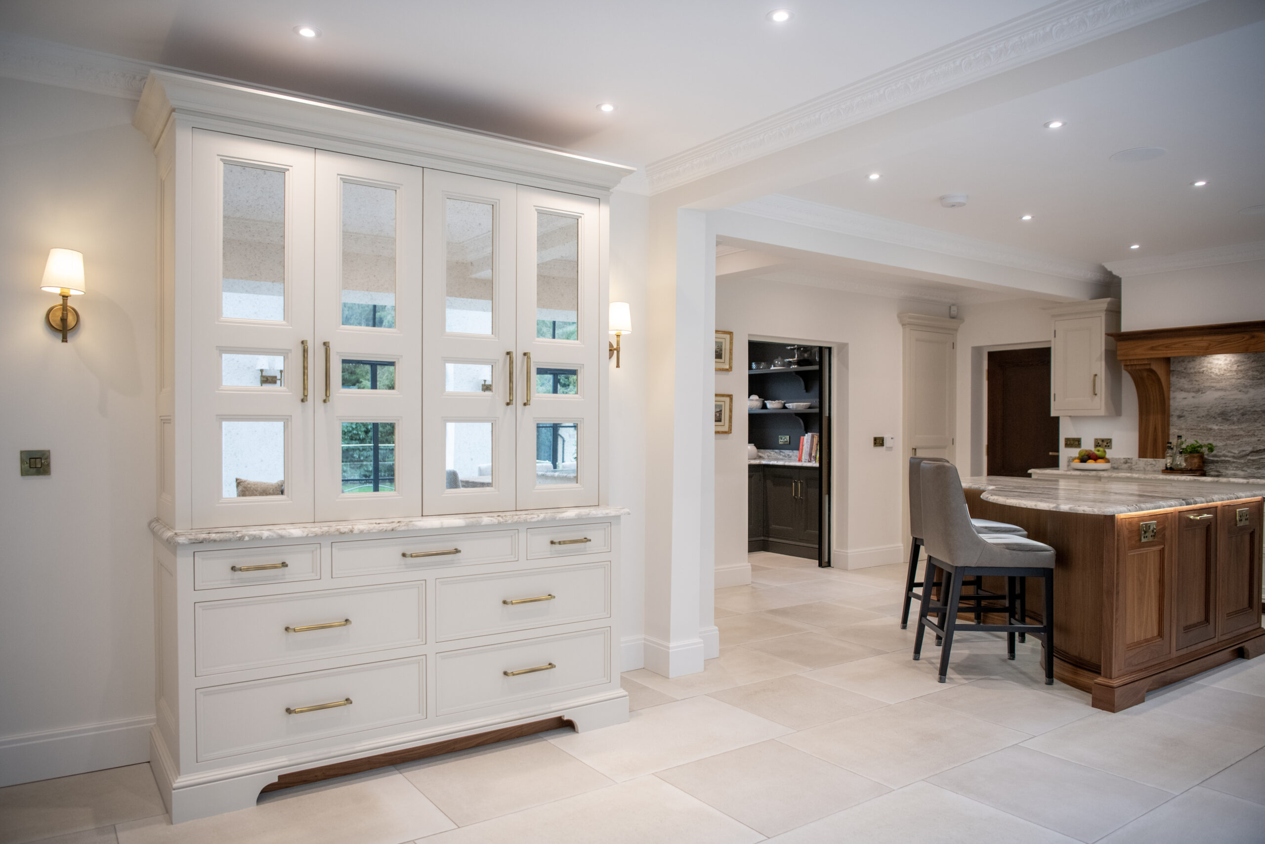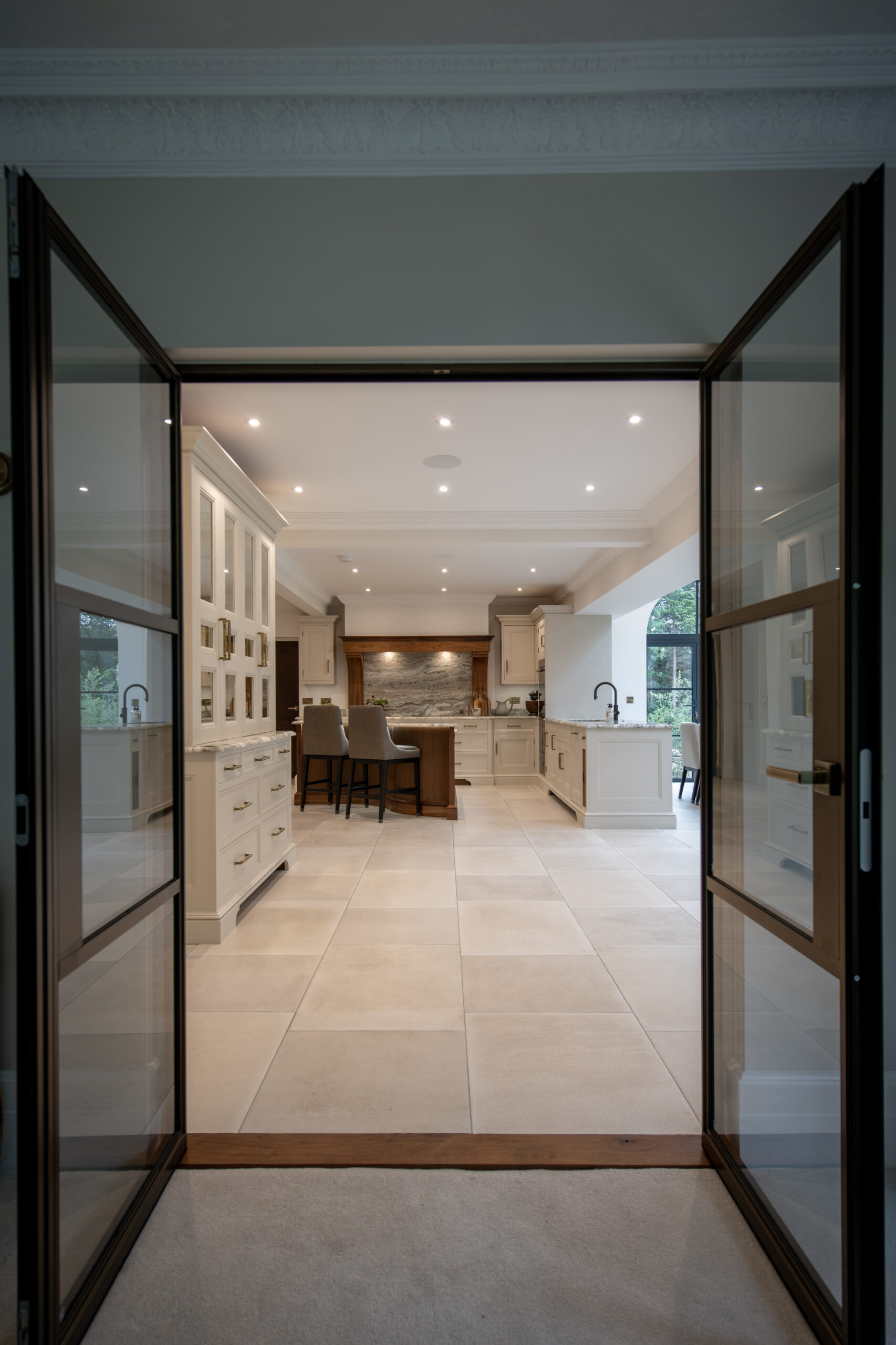 We shaped every detail around the client’s lifestyle, from concealed appliances and tailored storage to carefully planned sightlines across the open-plan layout. The result is a timeless, deeply personal kitchen that feels both impressive in scale and effortlessly welcoming.