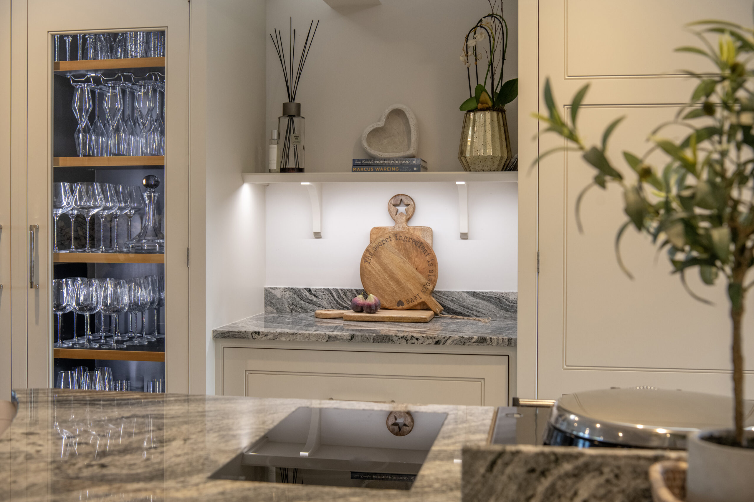 Our workshop built every cabinet to measure using traditional framed construction, adding finely detailed panel work and a hand-painted finish that highlight the skill and care behind true bespoke cabinetry.